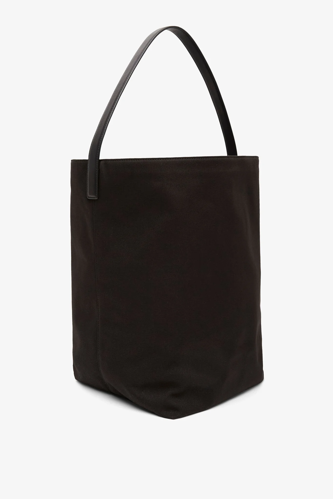 Black canvas tote bag from The Row. The Large N/S Park tote bag is made in cotton canvas featuring an interior toggle closure and flat handles, complete with a suede lining.